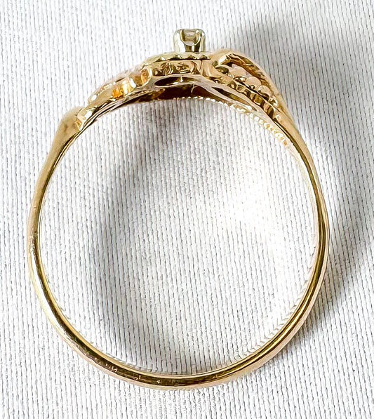 Vintage 10K CCO Black Hills Gold Diamond Multi Tone Leaf Ring, Sz. 7.25