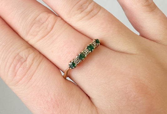 Vintage 10K Yellow Gold Mini Emerald Diamond Ring, Sz. 7.25/7.5, Simple Dainty Stackable Ring