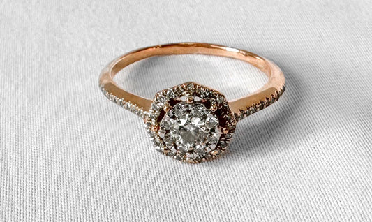 10K Rose Gold Diamond Round Brilliant Cut Halo Engagement Ring, Sz. 9, Unique Statement Engagement Wedding Ring