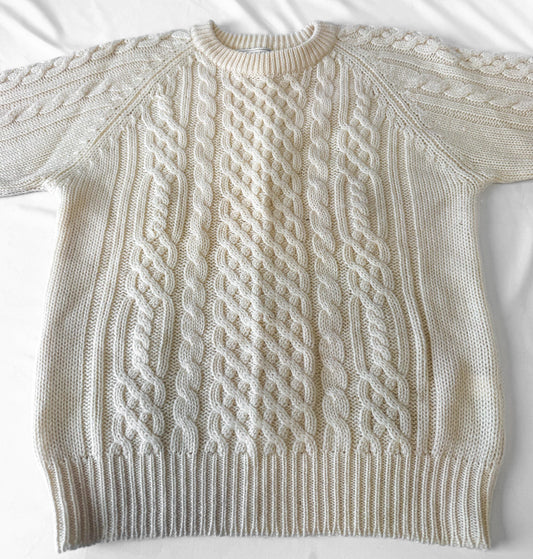 Vintage Cream/Off-White Cable Knit Pure Wool Sweater, Approx. Women's Sz. M/L