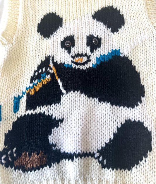 Vintage Handknit Cream/Off-White Panda Sweater Vest, Women's Sz. XS/S