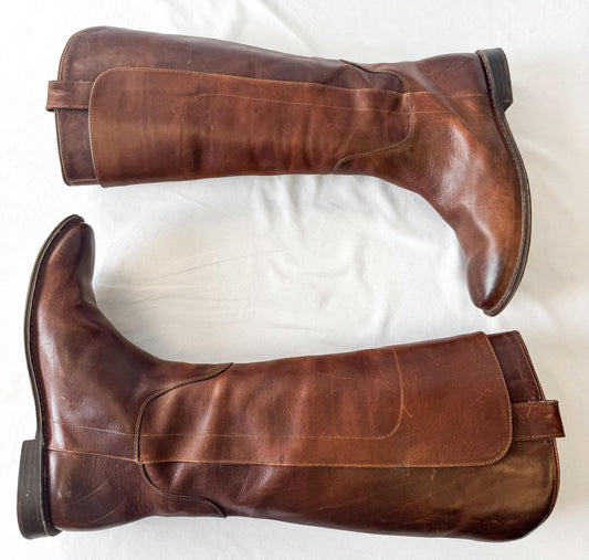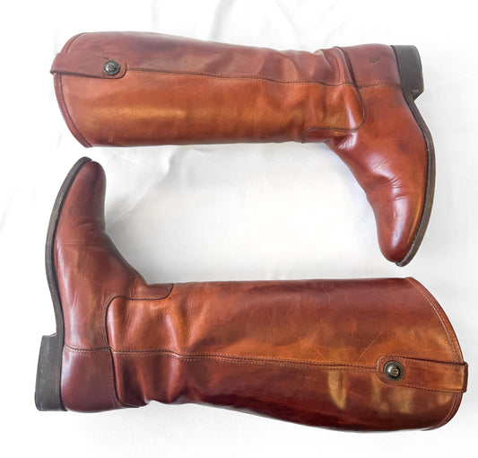 Frye Paige Cognac Brown Knee High Leather Boots, Style 4003, Women's Sz. 9B