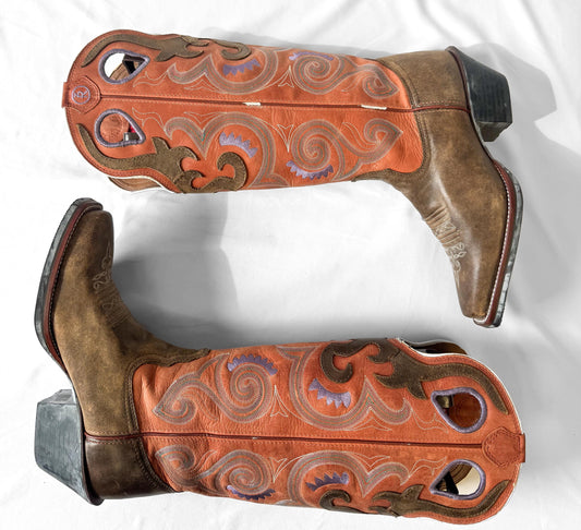 Vintage Tony Lama Buckaroo 3R Coral Purple Leather Cowboy Boots, Women's Sz. 8.5B, Unique Statement Western Festival Boots