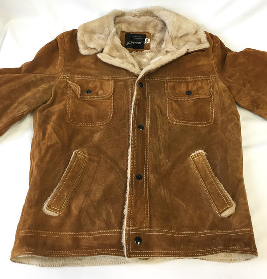 Vintage 70s JCPenney Brown Suede Sherpa Fur Jacket, Men's Sz. M/L