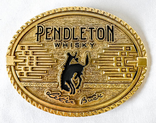 Western Montana Silversmiths Pendleton Whisky Gold Logo Belt Buckle, Vintage Western Accessories