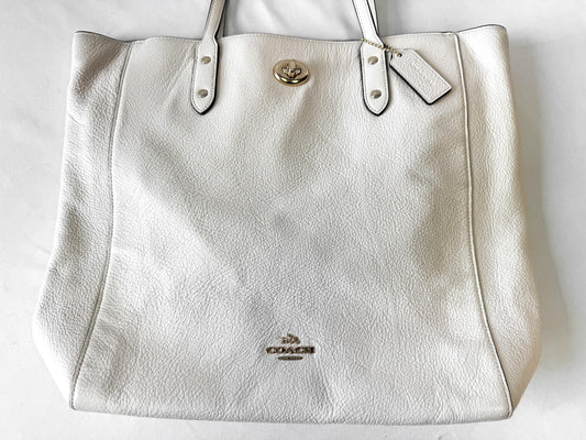 Modern Coach Town Tote Chalk White/Cream Turn Lock Pebbled Leather Shoulder Toten Bag, Style 12184