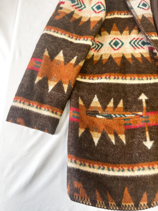 Vintage 90s Brown Multicolor Aztec Southwest Print Wool Blend Button Blazer Jacket, Approx. Men's Sz. S/M