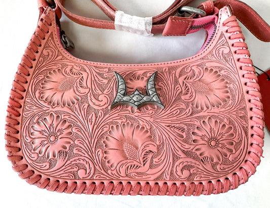 NWT Loyal West Dannia Pink Tooled Leather Shoulder Bag, Unique Western Handbag