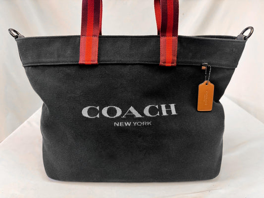 Coach 38 Black Red Large Canvas Tote Bag with Detachable Strap, Style CJ486