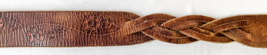 Vintage Tooled Leather Floral Painted Braided Belt, 32"- 38", Western Boho Style Belt
