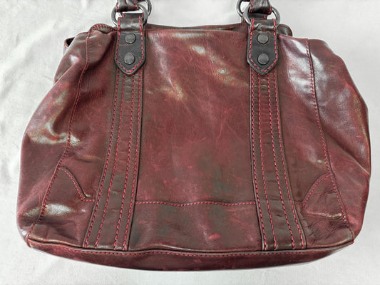 Vintage Style Frye Melissa Distressed Wine Burgundy Tote Handbag