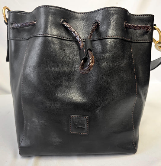 Vintage Dooney and Bourke Florentine Hattie Black Leather Drawstring Bucket Shoulder Bag