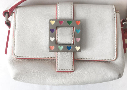 Vintage Y2K Dooney and Bourke White and Pink Mini Bag with Rainbow Heart Buckle, Unique Y2K 00s Dooney Crossbody Shoulder Bag