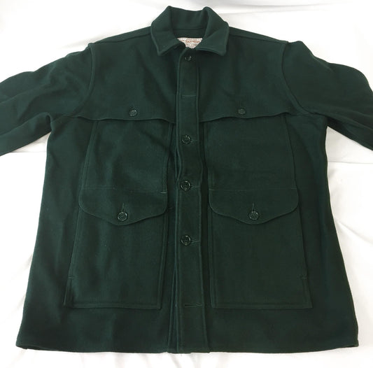Vintage 80s Filson Mackinaw Cruiser Forest Green Pure Wool Button Up Jacket, Men's Sz. L/XL