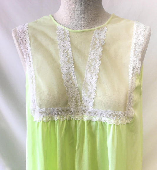 70s Neon Pastel Green Lace High Neck Slip Dress, Size Small, Vintage Lingerie Slip Dress