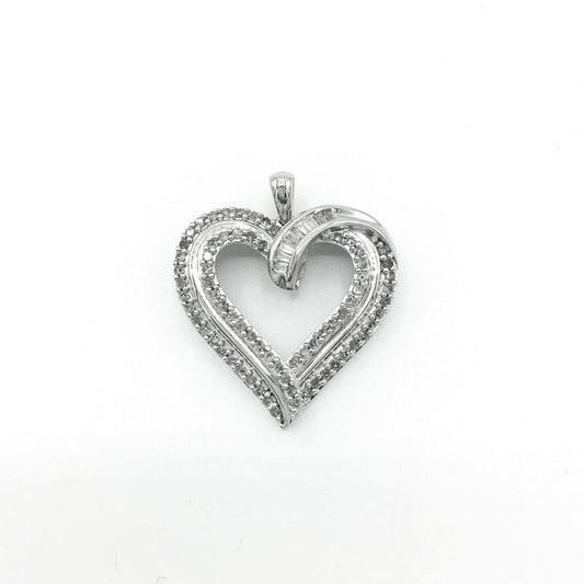 925 Diamond Round and Baguette Cut Heart Pendant, Simple Everyday Pendant