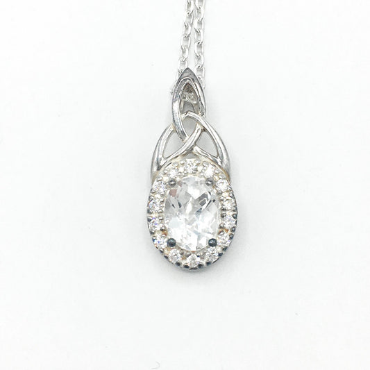 JMH Jewelers' 925 White Topaz Trinity Knot Pendant Necklace, 20", 1mm