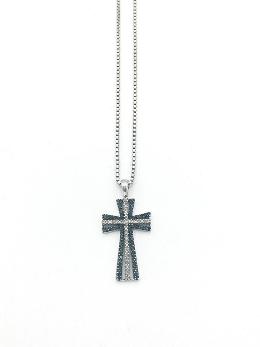 Vintage 10K Diamond and Marcasite Cross Pendant on 16" 925 Heng Ngai KA1772 Italy Box Chain, Simple Cross Necklace