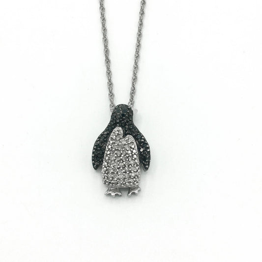 925 Heng Ngai Diamond and Marcasite Penguin Necklace on 925 20" Rope Chain