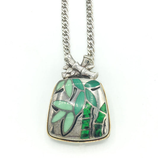 18K 925 Eric Grossbardt Green Bamboo Pendant on 925 Italy 16" Chain, Rare Find