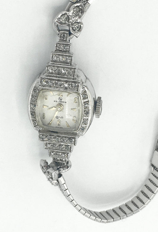 Speidel 10K 1/20 Gold Filled Diamond & Glass Stone Bezel Stainless Steel Watch, 7", Not in Working Condition, Art Deco Cocktail Watch