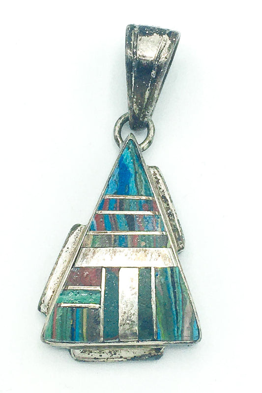 Vintage Alfred Martinez Navajo Multicolor Triangle Sterling Silver Pendant, Vintage Navajo Jewelry