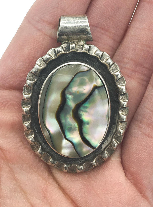 Vintage Mexico 925 Sterling Silver Abalone Shell Slide Pendant, Vintage Boho Style Pendant Jewelry