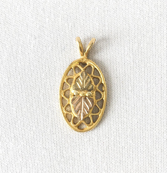 Vintage 12K Black Hills Gold Filigree Leaf Pendant with Stampers Makers Mark, Vintage Black Hills Gold Jewelry
