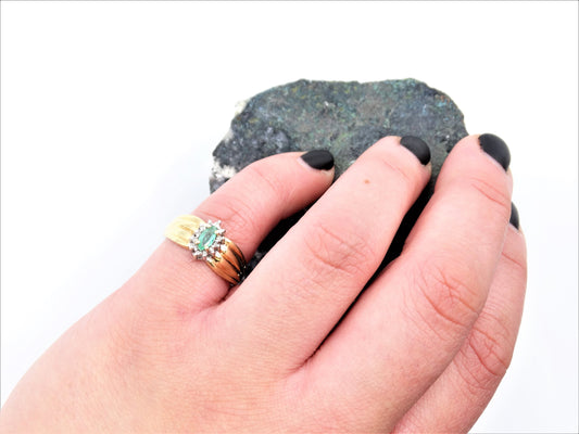 Vintage Columbian 10K Emerald Diamond Estate Ring Size 6, Art Deco Estate Jewelry