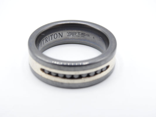 Vintage TRITON Black Diamond and Tungsten Carbide Men's Ring Band, Everyday Estate Jewelry, Ring Size 10 1/2