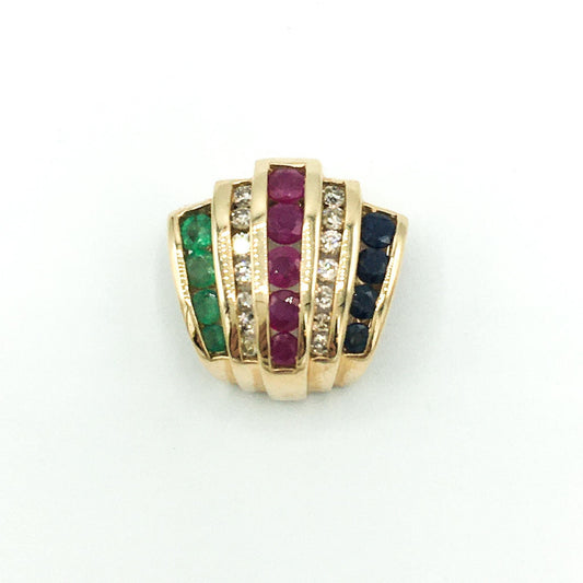 14K Gold Diamond Ruby Emerald Sapphire Clip Slide Pendant