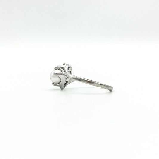 Vintage 10K White Gold Twin Pearl Ring, Size 7