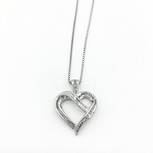 925 Genuine Diamond Heart Pendant with 925 Box Chain 18" Necklace