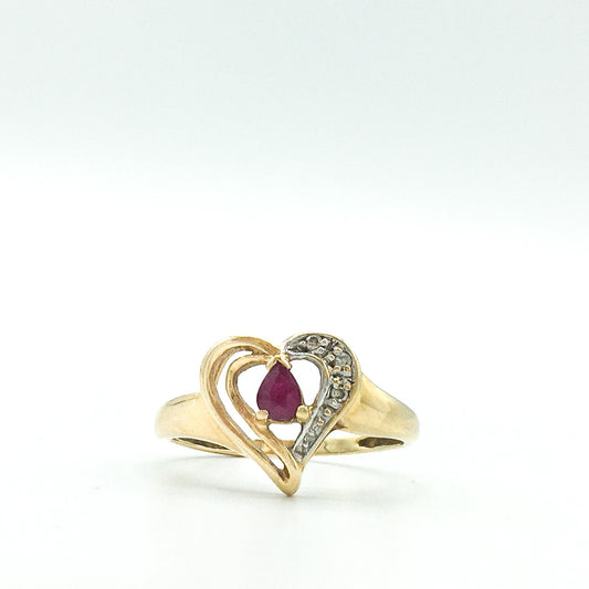 10K Pear Shaped Ruby and Diamond Heart Ring, Size 5