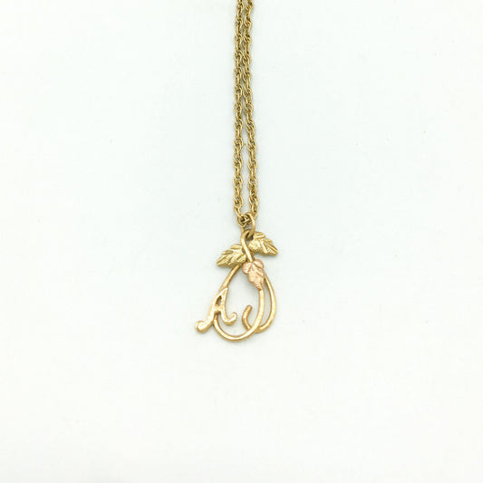 10K Black Hills Gold Letter "A" Pendant Necklace, 14K GF Rope Chain