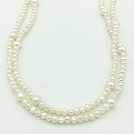 Vintage 10k Double Strand Pearl Necklace, 17" Pearl Necklace