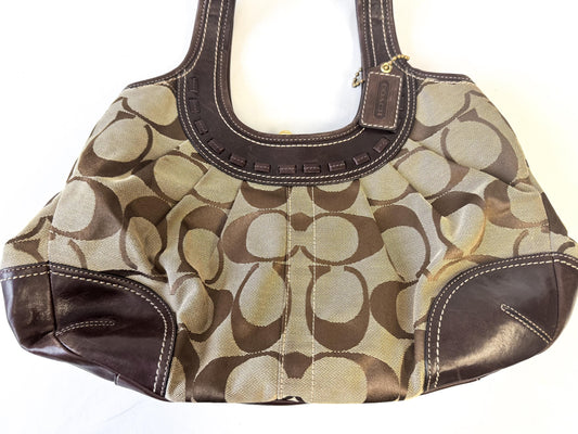 Y2K 00s Coach Ergo Framed Signature Brown Beige Kiss Lock Pleated Shoulder Bag, Style 12232