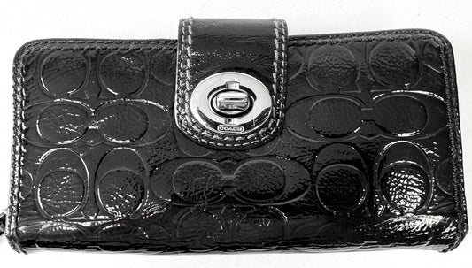 Y2K 00s Coach Black Patent Leather Embossed Monogram Turnlock Wallet