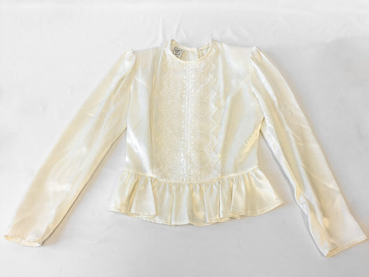 Vintage 70s Gunne Sax By Jessica McClintock Ivory Lace Front Top and Skirt Set, Vintage Sz. 9