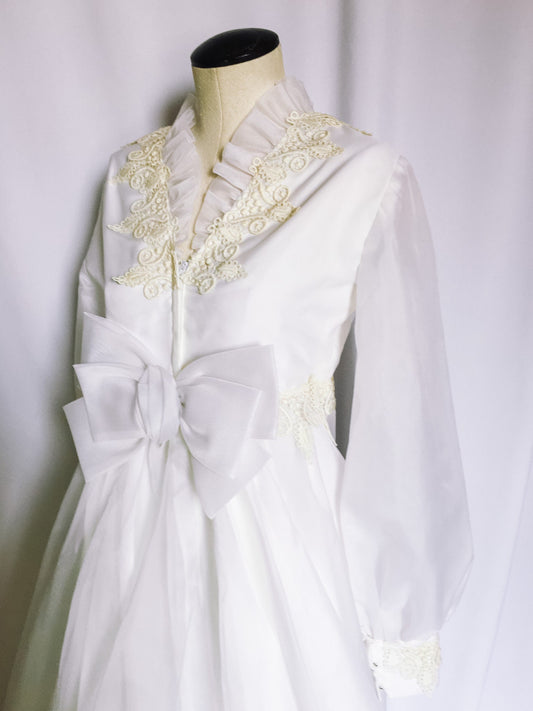 Vintage Long-sleeved Collared Wedding Dress with Cream Lace Detailing