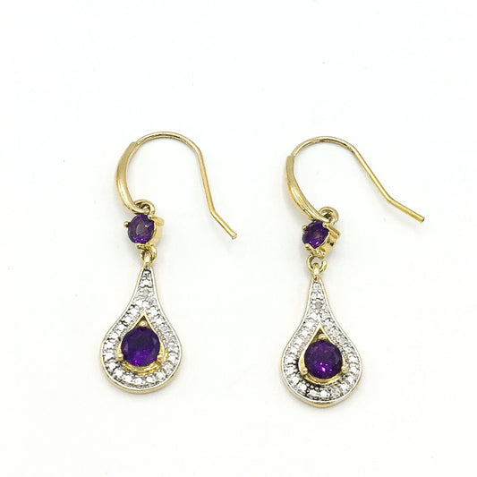 African Purple Amethyst and White Sapphire Teardrop Dangle Earrings