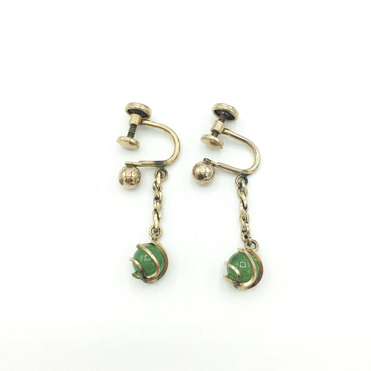 Vintage 12K Gold Filled Jade Dangle Screw Back Earrings