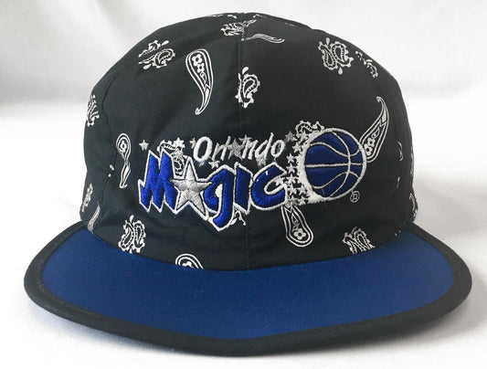 90s Orlando Magic Reversible Bandana Paisley Print Embroidered Tie Back Flatbrim Baseball Cap, Vintage Orlando Magic NBA Apparel