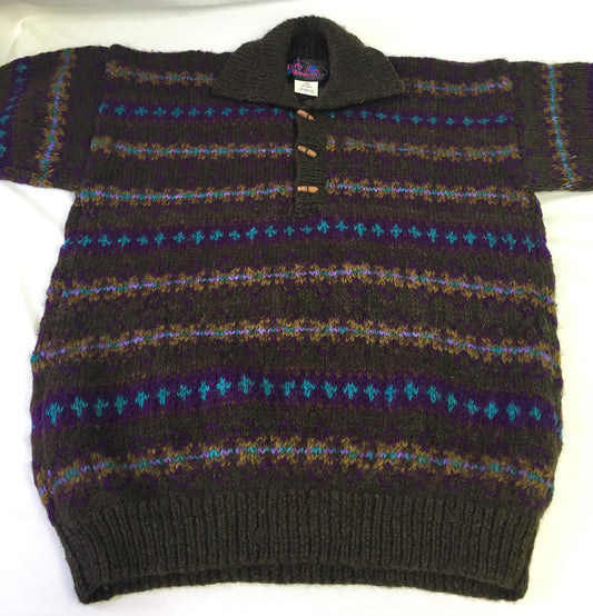 Vintage 90s Green Multicolor Striped Geometric Abstract Wool Quarter Button Up Sweater, Sz. L, Vintage Unisex Grandpa Style Sweater