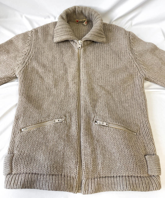 Vintage Field and Stream Beige Chunky Knit Pure Wool Zip Up Cardigan Sweater, Men's Sz. M/L