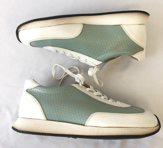 Vintage Dooney and Bourke Pastel Blue/Cream/Off-White Textured Leather Sneakers, Women's Sz. 9.5, Vintage Preppy Academia Style Shoes
