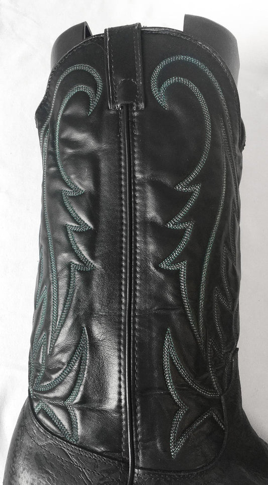 Vintage Laredo Black Leather Cowboy Boots with Teal/Blue Embroidery, Style #2760, Men's Sz. 10D, Vintage Western Boots