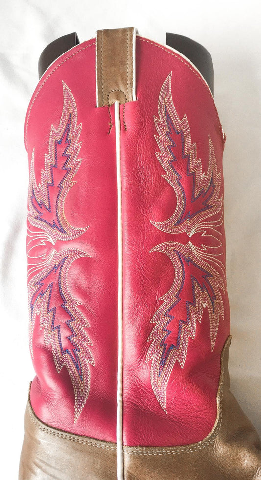 Justin Bent Rail Pink Brown Leather Square Toe Cowboy Boots, Style #BRL311, Women's Sz 9B, Vintage Unique Western Cowgirl Festival Boots