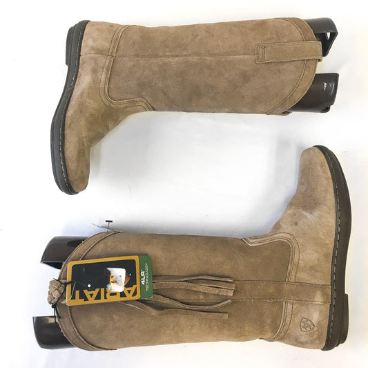 NWT Ariat Fatbaby Sassafras Tan Suede Braided Fringe Boots, Women's Sz. 6B, Vintage Western Boho Leather Boots