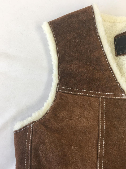 Vintage LLB Brown Suede Cowhide Sherpa Lined Vest, Approx. Women's Sz. XS, Vintage Western Country Style Vest